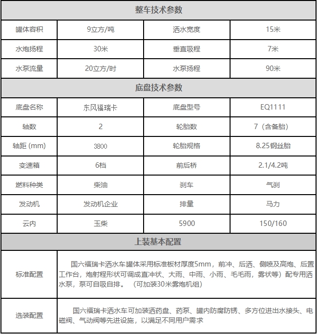 國(guó)六東風(fēng)大福瑞卡9.2方灑水車