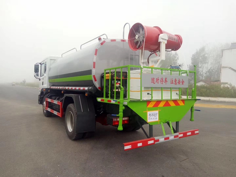 4500軸距,玉柴200馬力/康機(jī)210馬力發(fā)動機(jī),法士特8檔變速箱,10.00鋼絲胎,前橋4.5T后橋10T 原廠空調(diào),容積15立方米,ABS ,采用大流量水泵,大通徑球閥、基本灑水功能前沖、后灑、側(cè)噴、工作平臺帶軸承高炮(可調(diào)節(jié)成霧狀、直柱狀)、可泵進(jìn)泵出、罐體兩側(cè)圓形炮筒、帶兩根抽水軟管,尾部加裝30米霧炮機(jī)組。